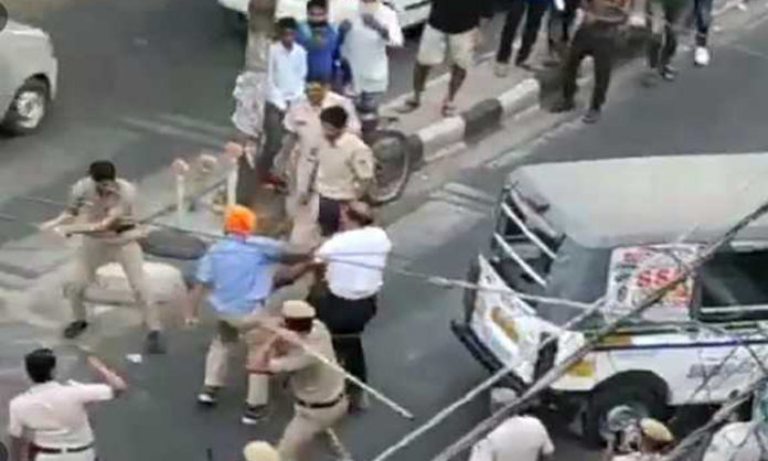 In one of the purported videos, the tempo driver was seen chasing the policemen with a sword following which other policemen arrived at the scene and they thrashed the driver and his son with batons while overpowering them.