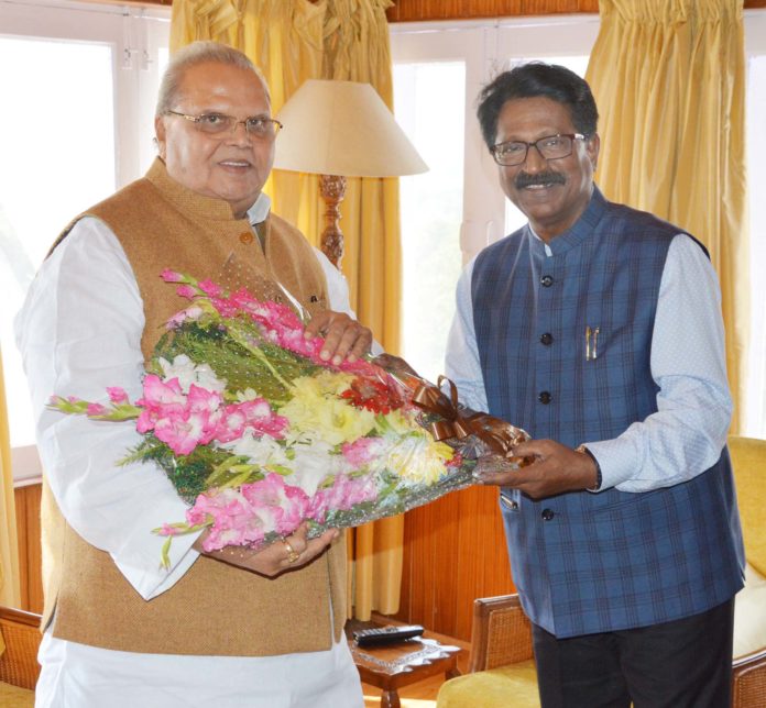 SRINAGAR, JULY 19: Sh. Arvind Ganpat Sawant, Union Minister of Heavy Industries & Public Enterprises, met Governor Satya Pal Malik at the Raj Bhavan here today.
