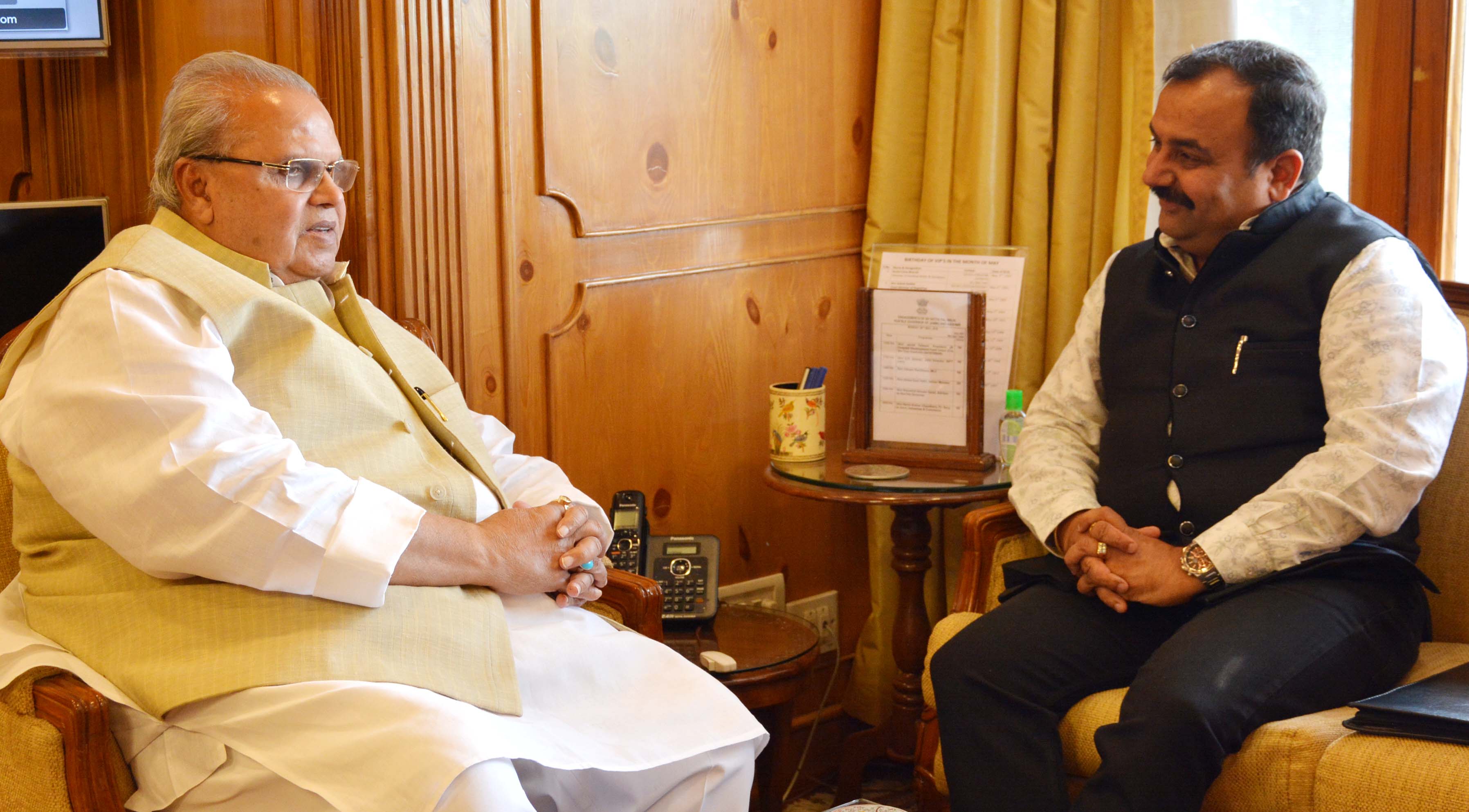 SRINAGAR, MAY 20: Sh. Vikram Randhawa, MLC, met Governor Satya Pal Malik at the Raj Bhavan here today.