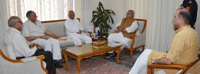 JAMMU, APRIL 21: Sh. Suresh Soni , Sah-Sar Karyawah , Rashtriya Swayamsevak Sangh (RSS)met Governor Satya Pal Malik at the Raj Bhavan here today.