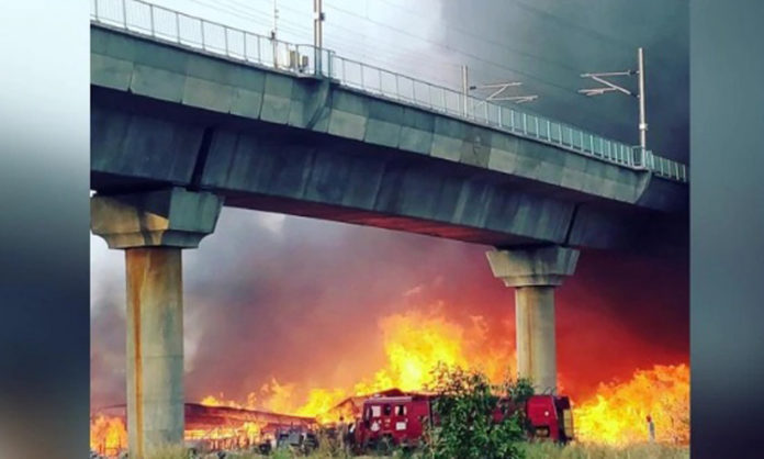 New Delhi, June 21:A major fire broke out at a furniture market near Kalindi Kunj station early Friday morning, prompting authorities to stop metro services, officials said.