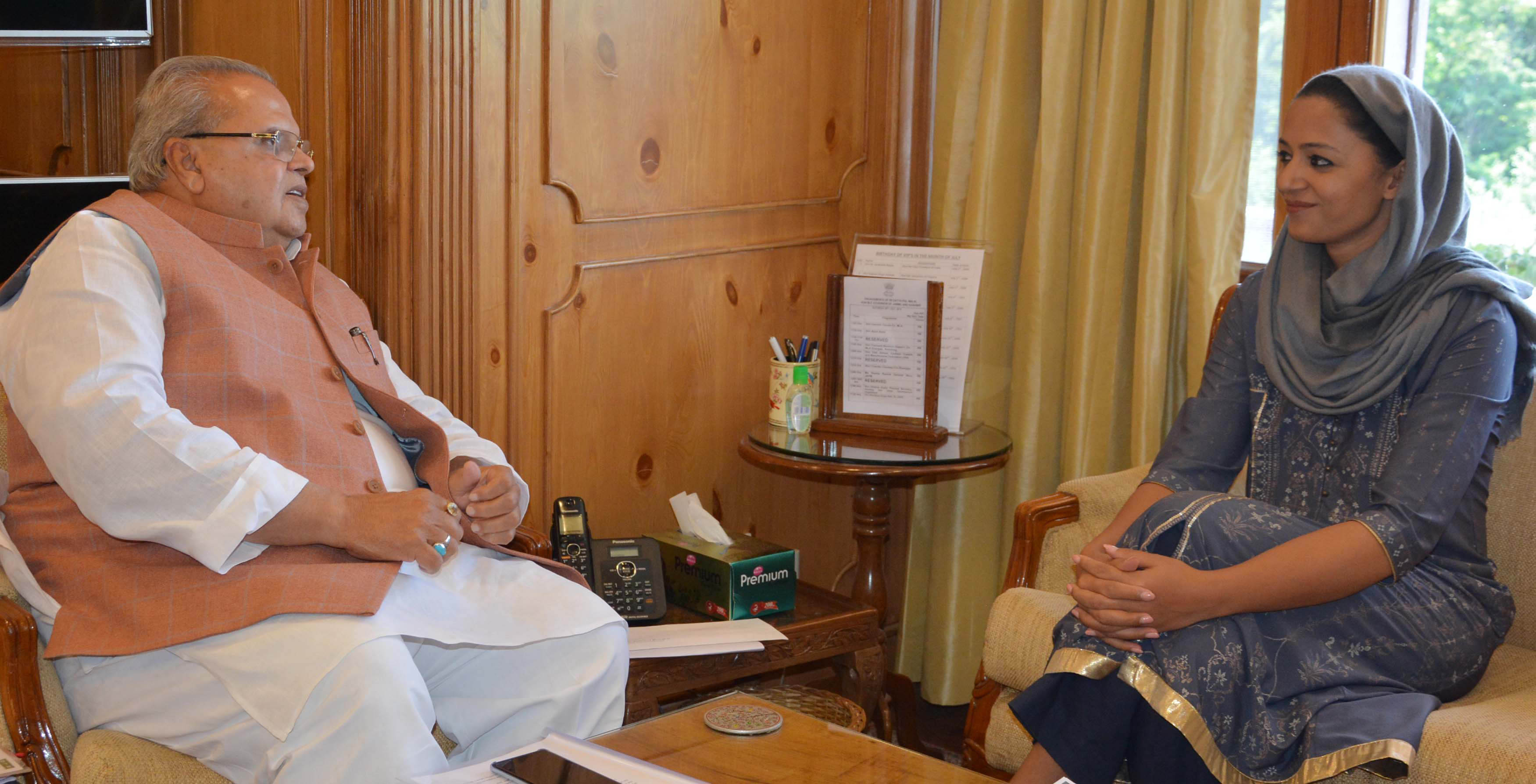 SRINAGAR, JULY 20:  Ms. Shehla Rashid, General Secretary, Jammu and Kashmir People’s Movement (JKPM), met Governor Satya Pal Malik at the Raj Bhavan here today.