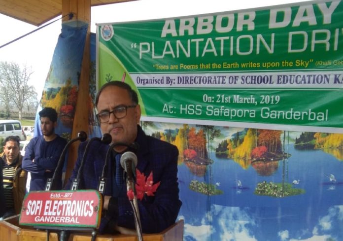 GANDERBAL, MARCH 21: Directorate of School Education Kashmir (DSEK) in collaboration with Government Higher Secondary School Safapora today organized plantation drive here to celebrate World Arbour Day.
