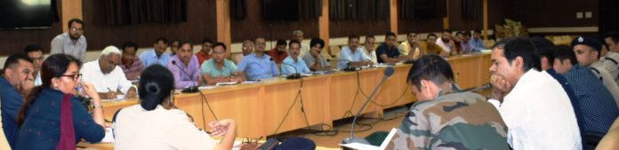 REASI, JULY 21: A meeting to discuss District Disaster Management Plan 2019-20 was held today here at a meeting chaired by District Development Commissioner Indu Kanwal Chib.