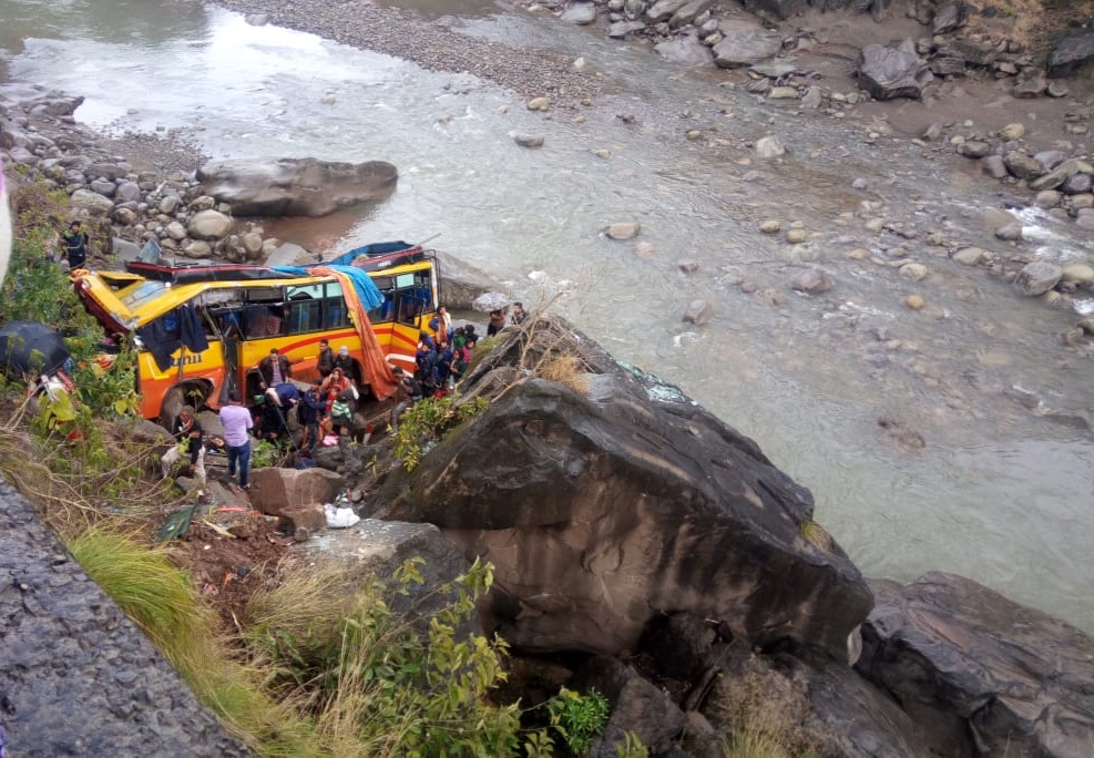 They said a bus on way to Ramnagar from Udhampur skidded off the road and plunged into a gorge at Kuh Nalla.