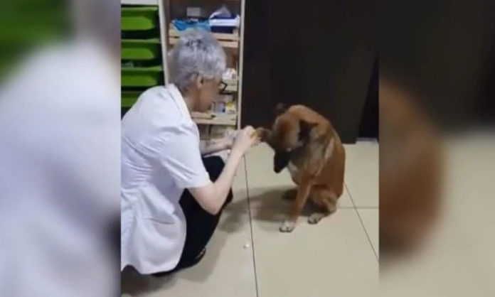 Banu Cengiz, thereafter, rushed to the dog and noticed that its paw was bleeding. So as to ask for help, the dog put its paw on Banu’s hand. She cleaned the wound and applied medicine on it apart from providing the dog with food and water.