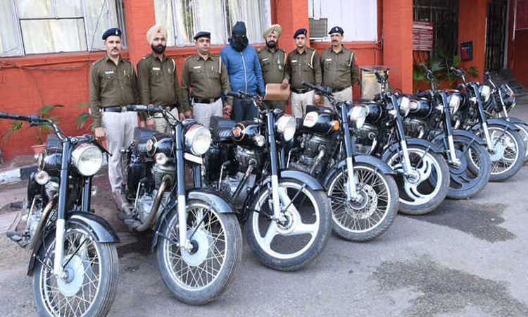 Chandigarh: A motorcycle thief, who used to steal Bullet motorcycles from paid parking lots, has been arrested by the Chandigarh Police. His arrest led to the recovery of seven Bullet motorcycles and a Hero Honda motorcycle.