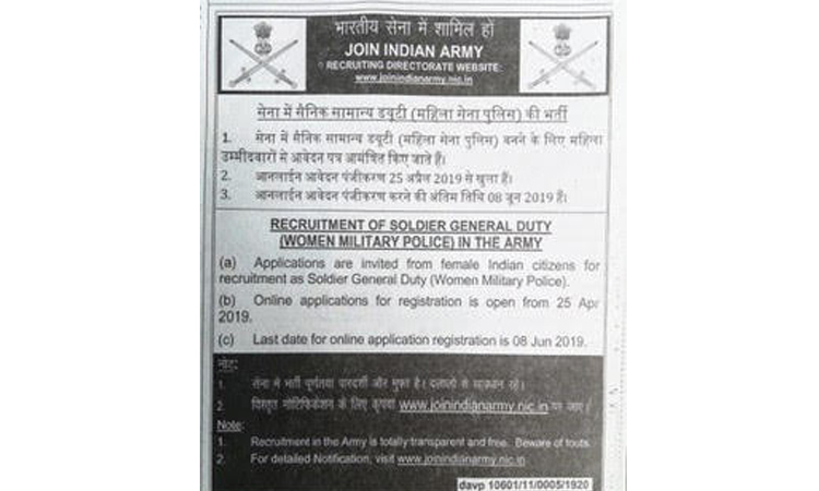 In a first, Indian Army puts out ad inviting women to join Military Police