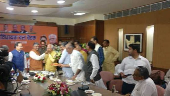 Chandigarh, October 26: Chief Minister Manohar Lal Khattar was on Saturday elected the leader of BJP legislature party in Haryana. Khattar’s name was proposed by BJP leader Anil Vij and seconded by the rest of the MLAs.