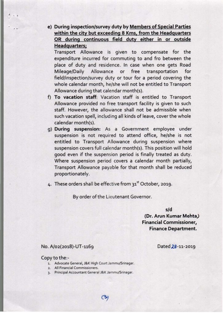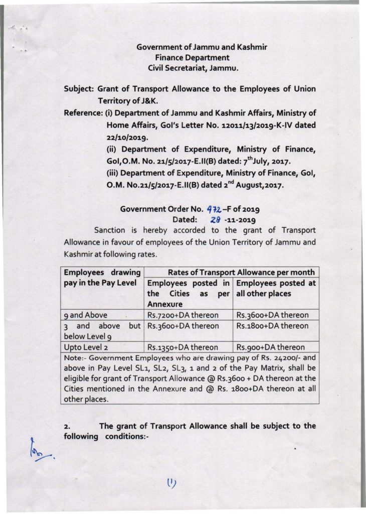 J & K Grant of transport allowance to the employees of union territory of J&K By Paigaam News - November 28, 2019 491 Facebook Twitter Google+ Pinterest WhatsApp Photo for representational purpose only.