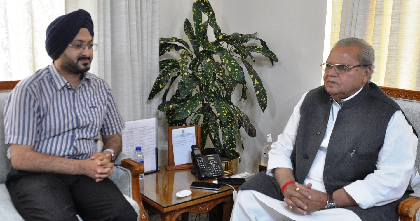 JAMMU, APRIL 29: Sh. Simrandeep Singh, CEO, Shri Mata Vaishno Devi Shrine Board (SMVDSB), met Governor Satya Pal Malik, Chairman of the Board, at the Raj Bhavan here today.