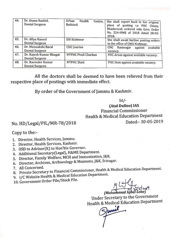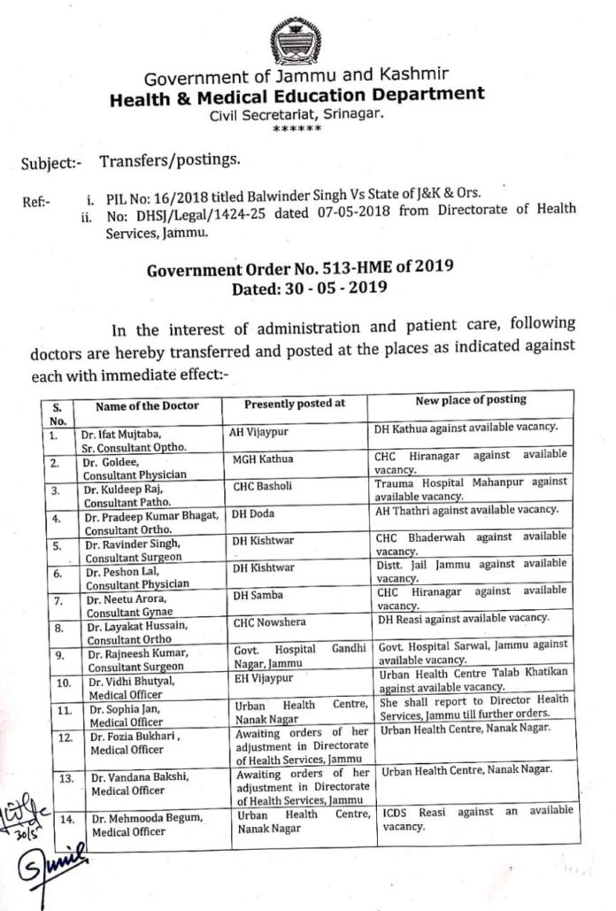 J & K Transfers And Postings By Paigaam News - May 31, 2019 441 Facebook Twitter Google+ Pinterest WhatsApp
