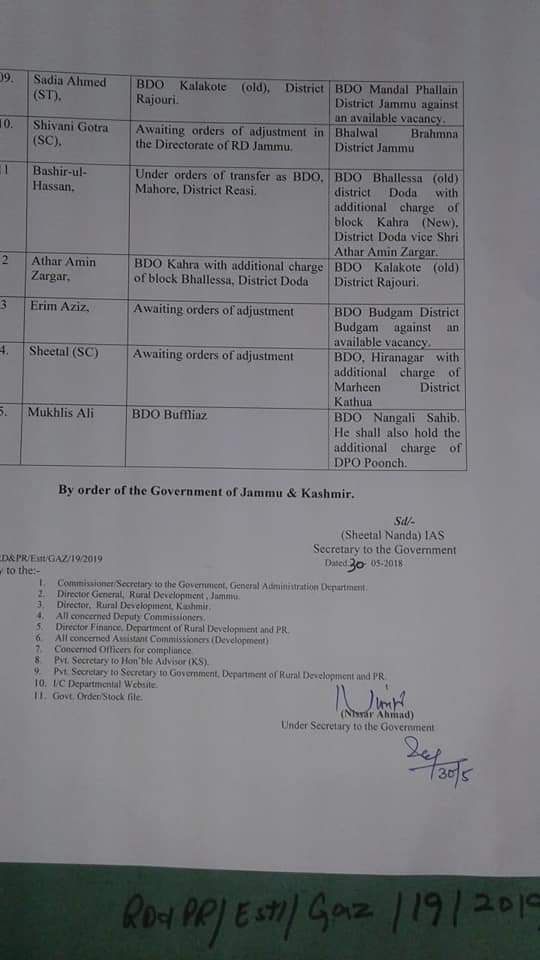 J & K Transfers And Postings In Rural Development Department By Paigaam News - May 31, 2019 520 Facebook Twitter Google+ Pinterest WhatsApp