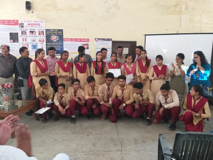 Miss Simran class twelfth student recited a poem on tobacco effects. Followed by a nukar natak was performed by students of GSSS, Raipur Rani stressing on leaving or not starting tobacco at all. In their nukar natak they demonstrated how due to peer pressure or to look cool youngsters start consuming tobacco ultimately resulting in disturbed family, society and premature death. They elaborated how with social support and will power all can overcome habit of tobacco consumption.