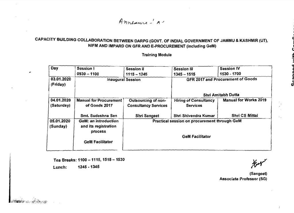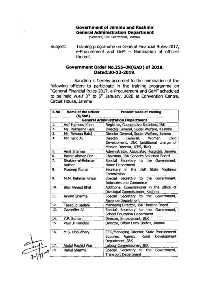 J & K Training programme on General Financial Rule 2017 e- Procurement and GeM -Nomination of officers thereof By Paigaam News - December 31, 2019 501 Facebook Twitter Google+ Pinterest WhatsApp