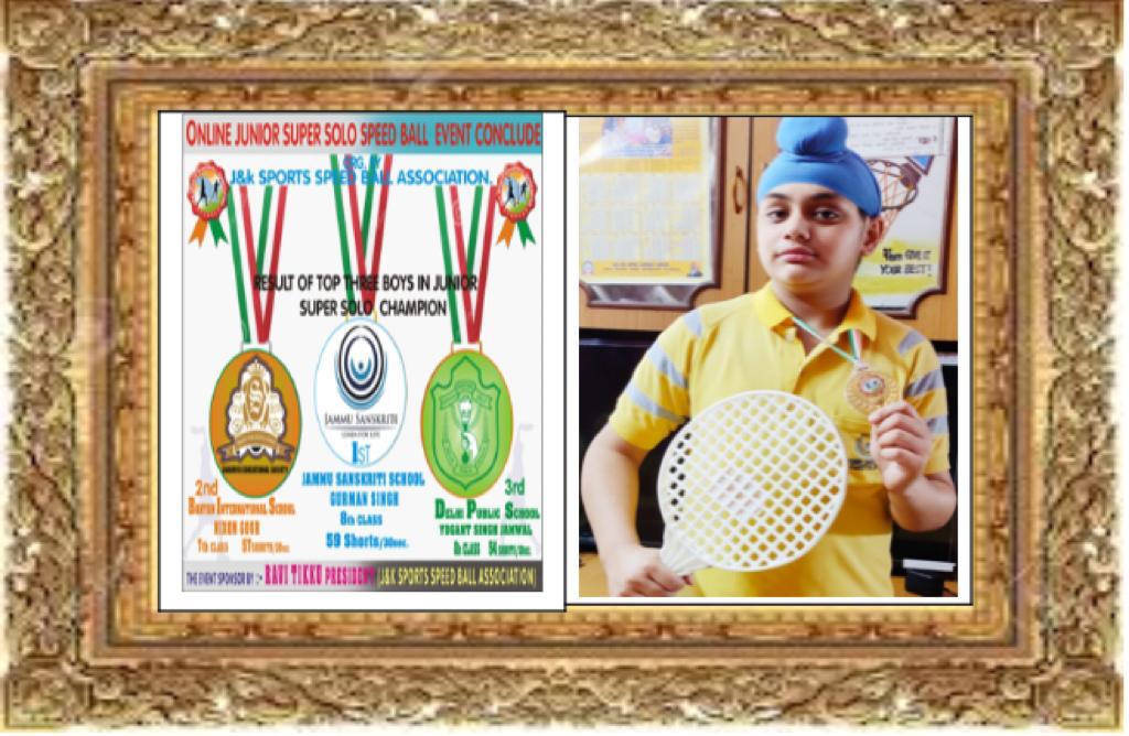 Jammu: It is rightly asserted that the show must go on and when determination and passion becomes your companions, success of show is guaranteed. In this context, it becomes pertinent to mention that Gurman Singh of class 8th has brought laurels to school, parents and the coach by winning online speedball championship organized by J&K speedball association with his exuberance and ardor.