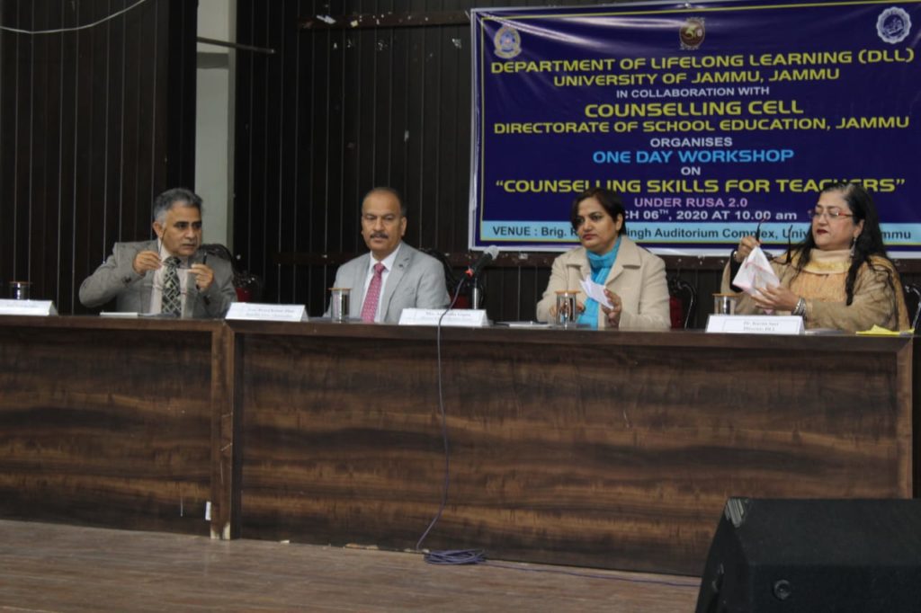 JAMMU, MARCH 08: Directorate of School Education in collaboration with the Department of Lifelong Learning, University of Jammu organized one day training-cum-workshop on “Counseling Skills for teachers” in Brigadier Rajinder Singh Auditorium, University of Jammu here.
