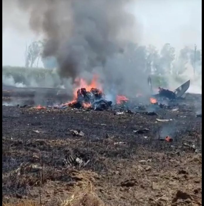 Chandigarh/Hoshiarpur, May 8: A Mig-29 aircraft airborne on a training mission from an Air Force base near Jalandhar crashed at Rurki Khas village near Garhshankar in Hoshiarpur on Friday.