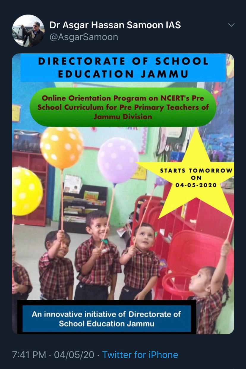 Jammu: Through first of its kind initiative, Directorate of School Education, Jammu is organising 15-day  online orientation workshop for teachers engaged in government’s model Kindergartens.