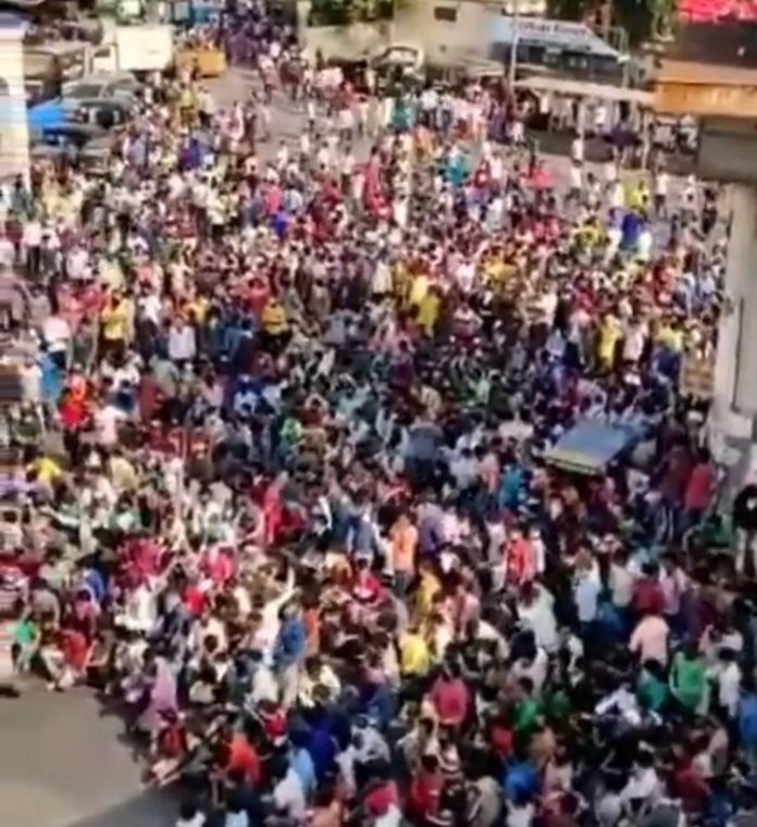 Mumbai, April 14: Hours after Prime Minister Narendra Modi announced extension of the coronavirus-enforced lockdown till May 3, a large number of migrant workers who earn daily wages came out on road here on Tuesday demanding transport arrangements to go back to their native places.