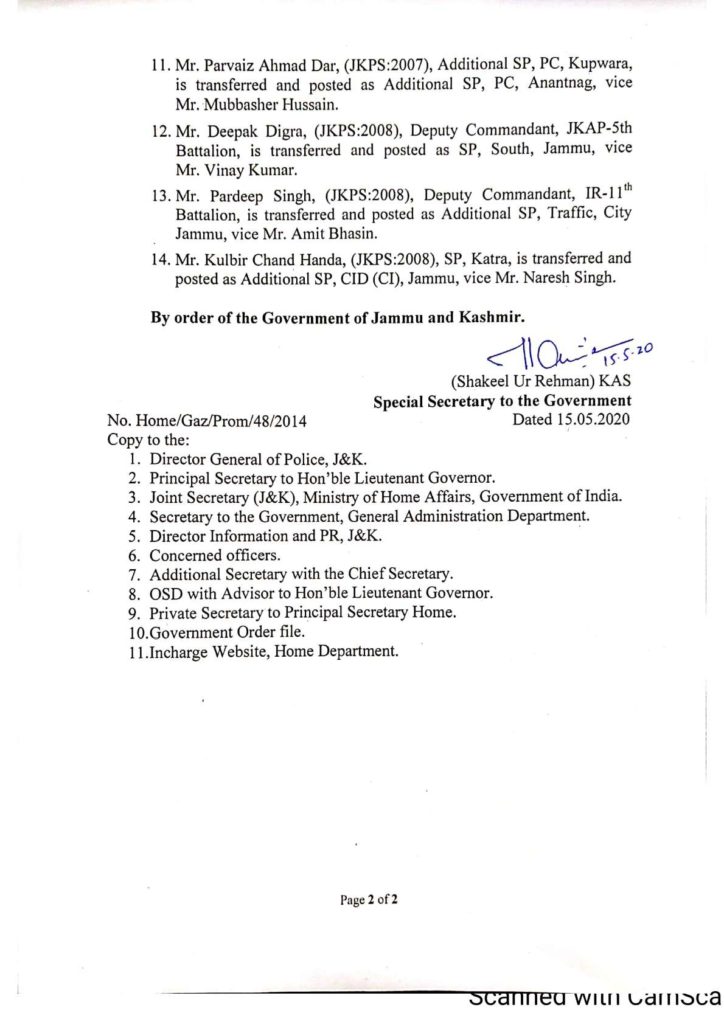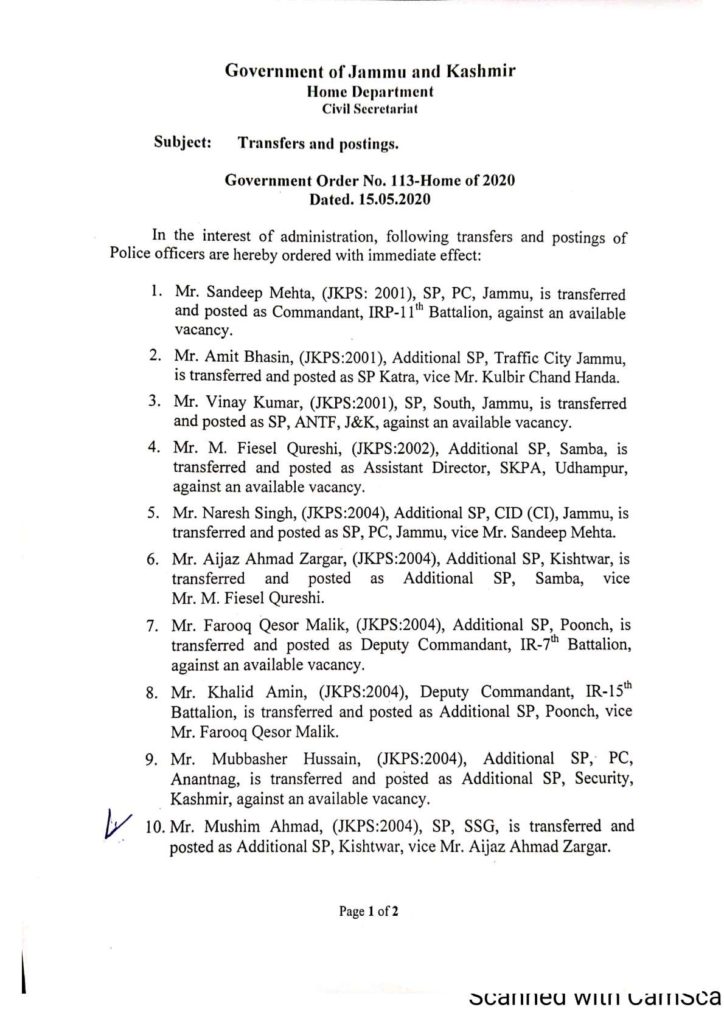 J & K Transfer & Postings By Paigaam News - May 15, 2020 519 Facebook Twitter Google+ Pinterest WhatsApp