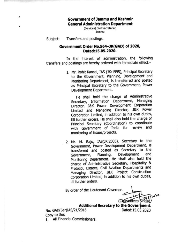 J & K Transfer & Postings By Paigaam News - May 15, 2020 481 Facebook Twitter Google+ Pinterest WhatsApp Photo for representation only.