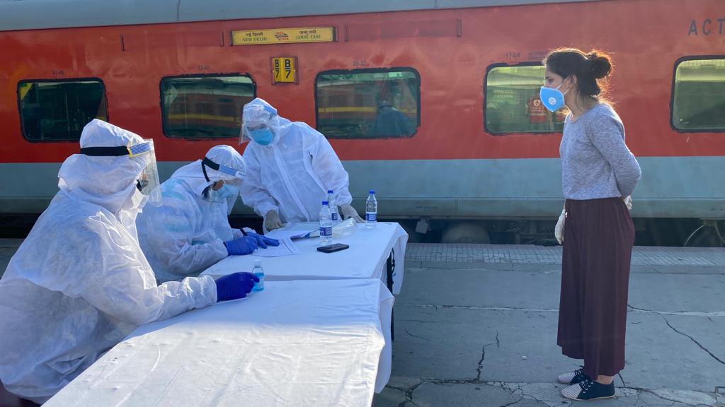 The District Administration Jammu is ensuring that 100 percent of the passengers entering Jammu from Railway Station Jammu Tawi are tested for COVID-19.