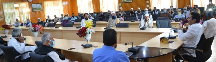 BUDGAM, MAY 19: Deputy Commissioner Budgam, Tariq Hussain Ganai today convened a meeting of religious scholars, aimas, mufties of various jamia masajids, dargas located across District Budgam.