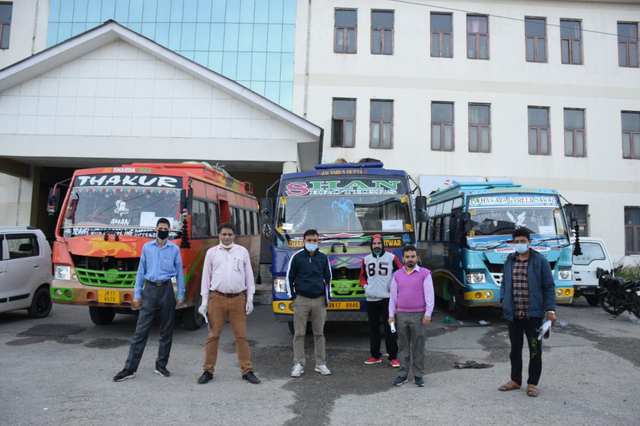 In order to secure their safe journey, preliminary medical screening of these applicants for COVID-19 symptoms was also done under the supervision of Chief Medical Officer Kishtwar Dr.R S Manhas. After completion of all the formalities and after receiving a green signal from higher authorities a fleet of 3 buses carrying total of 59 outbound passengers which includes 37 Males,16 females and 06 minor hailing from Chhattisgarh were today dispatched to their home state in the wee hours of the day with the ensured maintenance of social distancing in the buses.