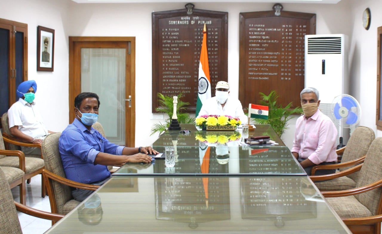 Chandigarh, April 24: Hon’ble Governor of Punjab and Administrator, UT Chandigarh, Sh. VP Singh Badnore today presided over Daily War Room meeting. The meeting was attended by Sh. Manoj Parida, Adviser, UT, Chandigarh and Sh. Sanjay Beniwal, Director General of Police at Raj Bhawan. The Administrator also interacted with Sh. Arun Gupta, Principal Secretary (Home), Sh. AK Sinha, Finance Secretary, Sh. KK Yadav, Commissioner, Municipal Corporation and Sh. Mandip Singh Brar, Deputy Commissioner, Chandigarh, Deputy Commissioners of Mohali & Panchkula, Director-PGIMER, Director Health Services and Director Principal, GMCH through Video Conferencing.
