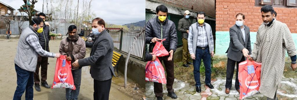 The Deputy Commissioner, Shafqat Iqbal distributed free ration kits to various poor, needy, destitute families and labourers at Buderkund and Bamlura. ADC Ganderbal, Farooq Ahmad Baba and Tehsildar Ganderbal were also present on the occasion.