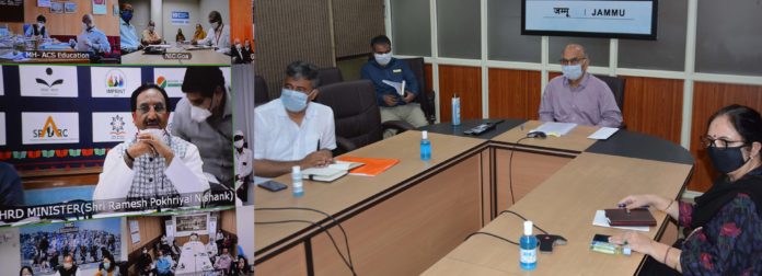 The Advisor apprised the union minister about the various steps taken to provide on–line education to the students through various IT-interventions and the use of services of Doordarshan, AIR, Private channels, which has benefitted a large number of students across Jammu and Kashmir. He also informed him about the decision of UT government to allow the mass promotion of students to next higher classes except 10th and 10+2, for which decision would be taken at an appropriate time.