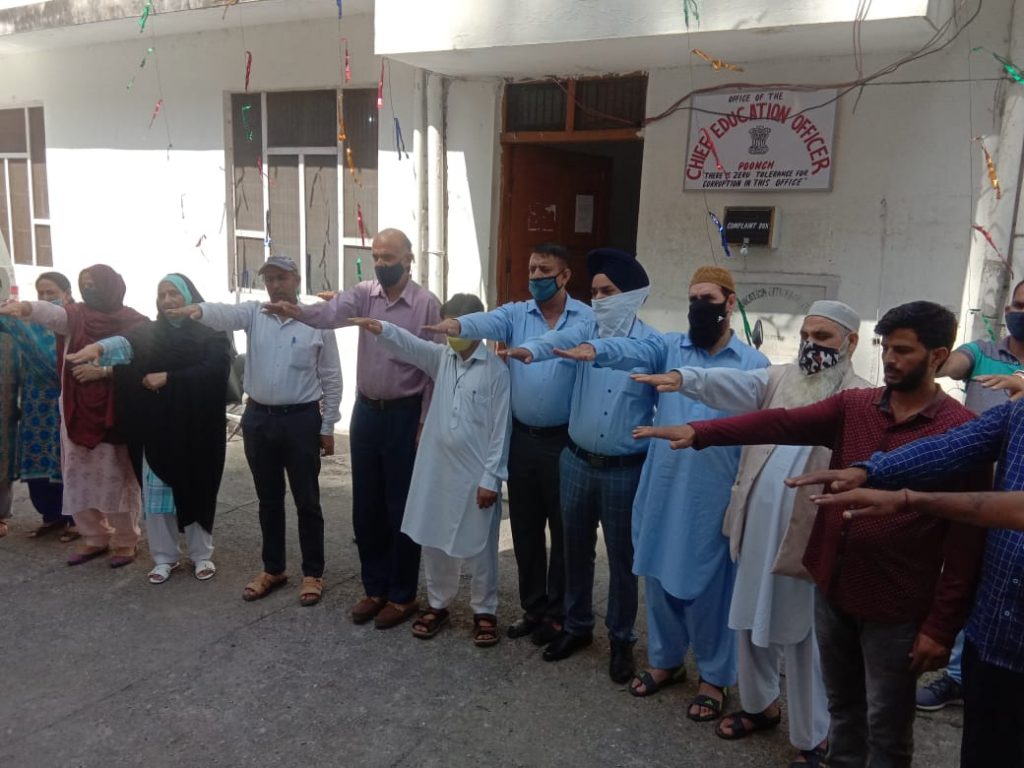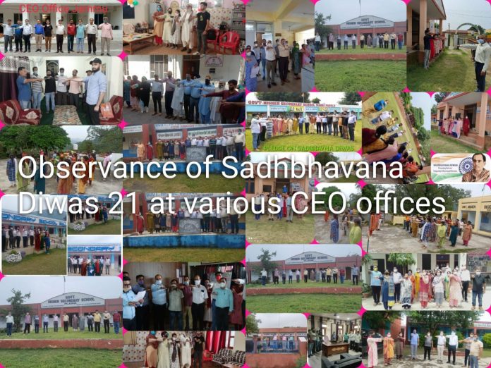 As per the directive of Government of Jammu and Kashmir General Administrative department ‘Civil Secretariat’, ‘Sadbhavana Diwas’ pledge was taken by all employees of the CEO office, DIET and schools of the district for the emotional oneness and harmony of this nation moving beyond the differences of caste, region, religion and language.