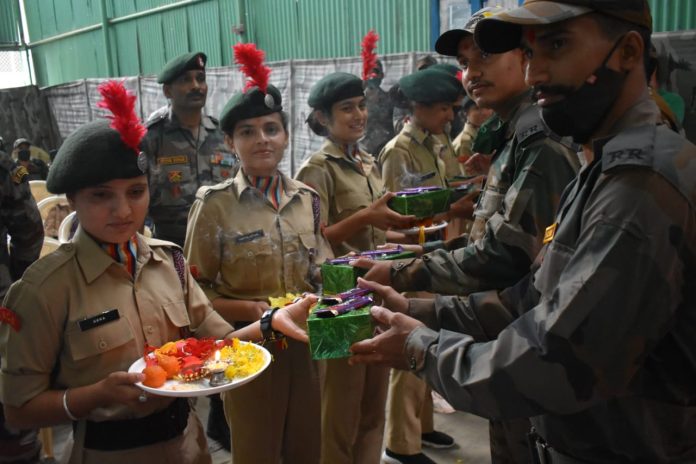 The event was commenced by receiving of girl students and staff of NCC, 2 JK (I) Company NCC, Bhaderwah, Government PG Degree College, Bhaderwah. The girl students brought Raksha Sutra (Rakhis) alongwith them and tied it on jawans symbolising the respect and love which the locals share towards the Indian Army. A Group Song was also presented by the girl students and staff. In reciprocation the girls students were presented with gifts as a token of thanks and promise of their protection. The event was conduced with serving of tea, refreshment and group photographs.