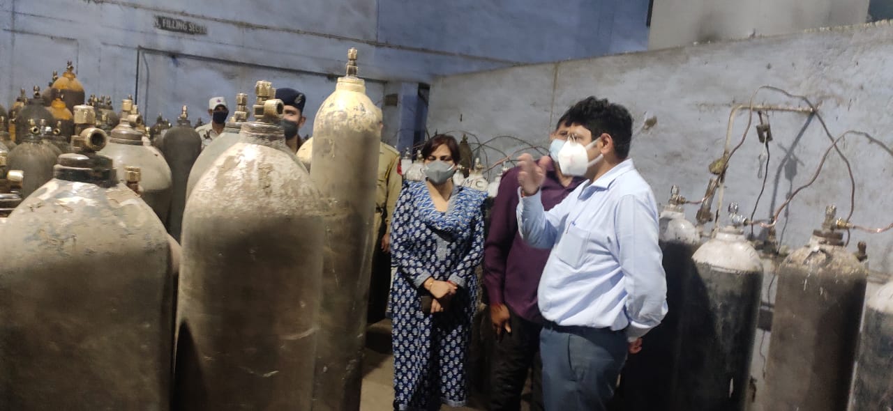 Jammu: Divisional Commissioner Jammu Dr. Raghav Langar along with DDC Samba Ms. Anuradha Gupta took a midnight tour of oxygen manufacturing units operating from SIDCO Bari Brahmana.