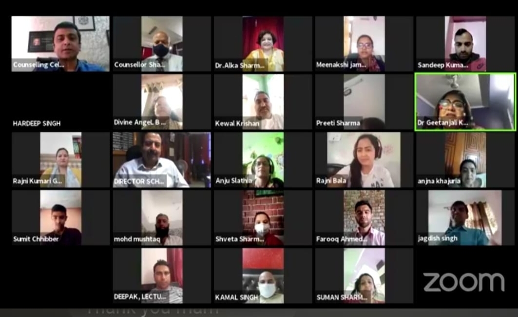 Dr. Surinder Kumar, Shanti Saroop Sharma, Preeti Sharma and Manan Mahajan, Team Members Counselling Cell DSEJ helped in the smooth conduct of the programme. Sohail Wani, Member IT section provided technical support in the webinar and Mr. Yasser Rasool, Media Coordinator, DSEJ tool.ul the responsibility of dissemination of news of the event.