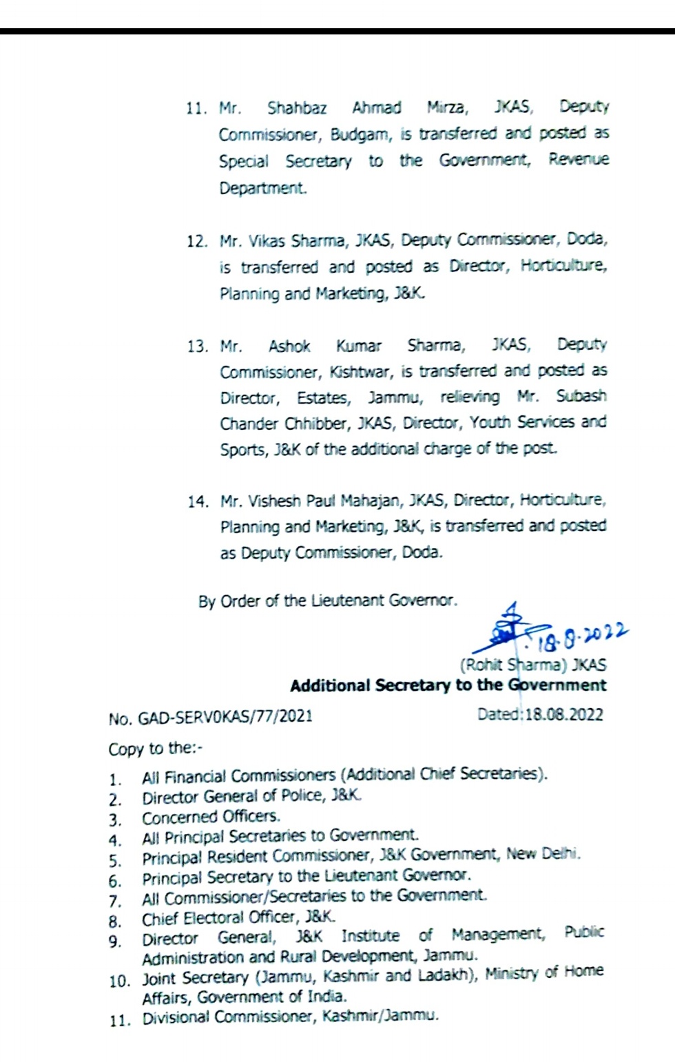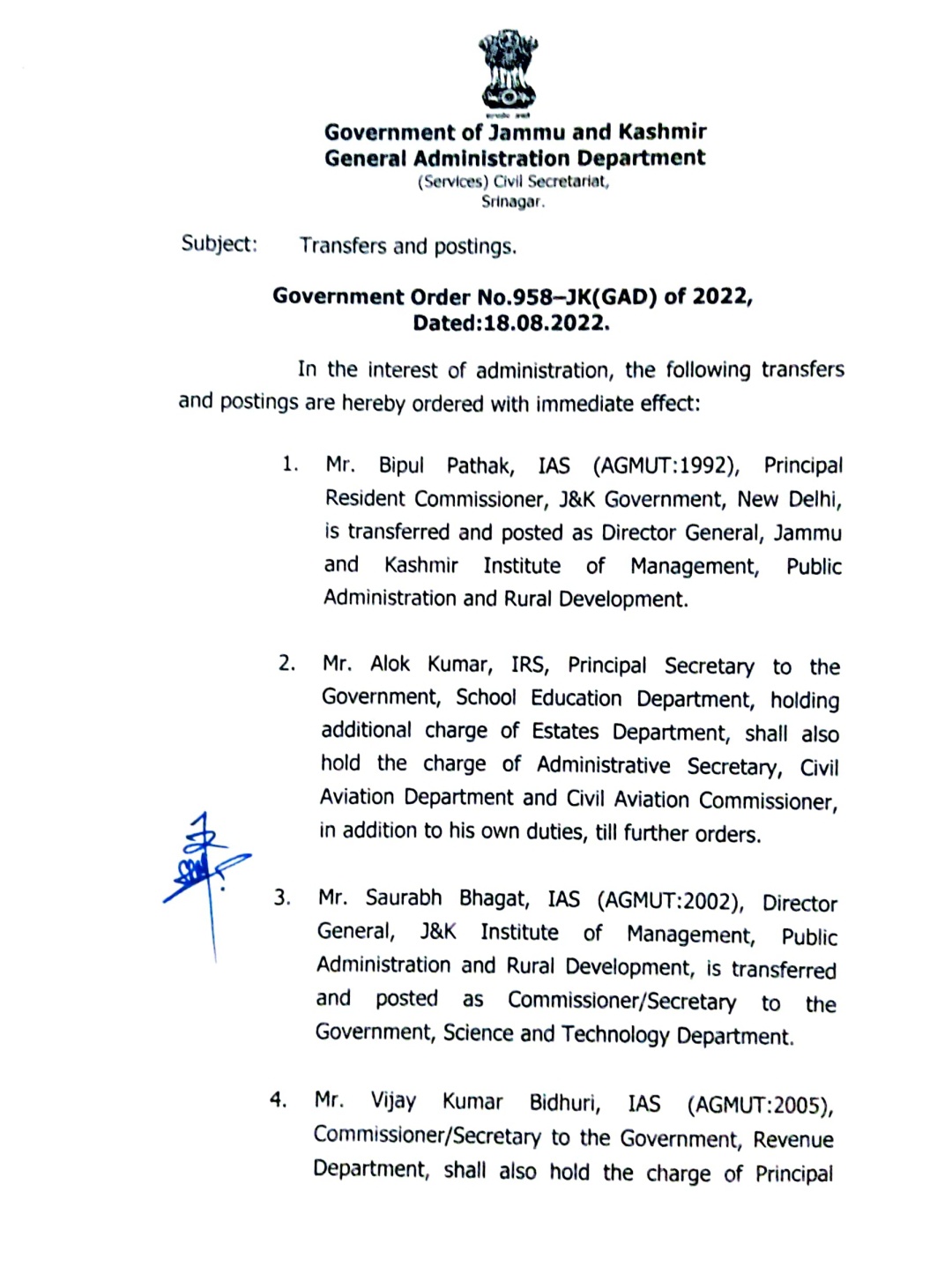 J & K Transfer & Posting By Paigaam News - August 18, 2022 457 Facebook Twitter Google+ Pinterest WhatsApp Photo for representation only.