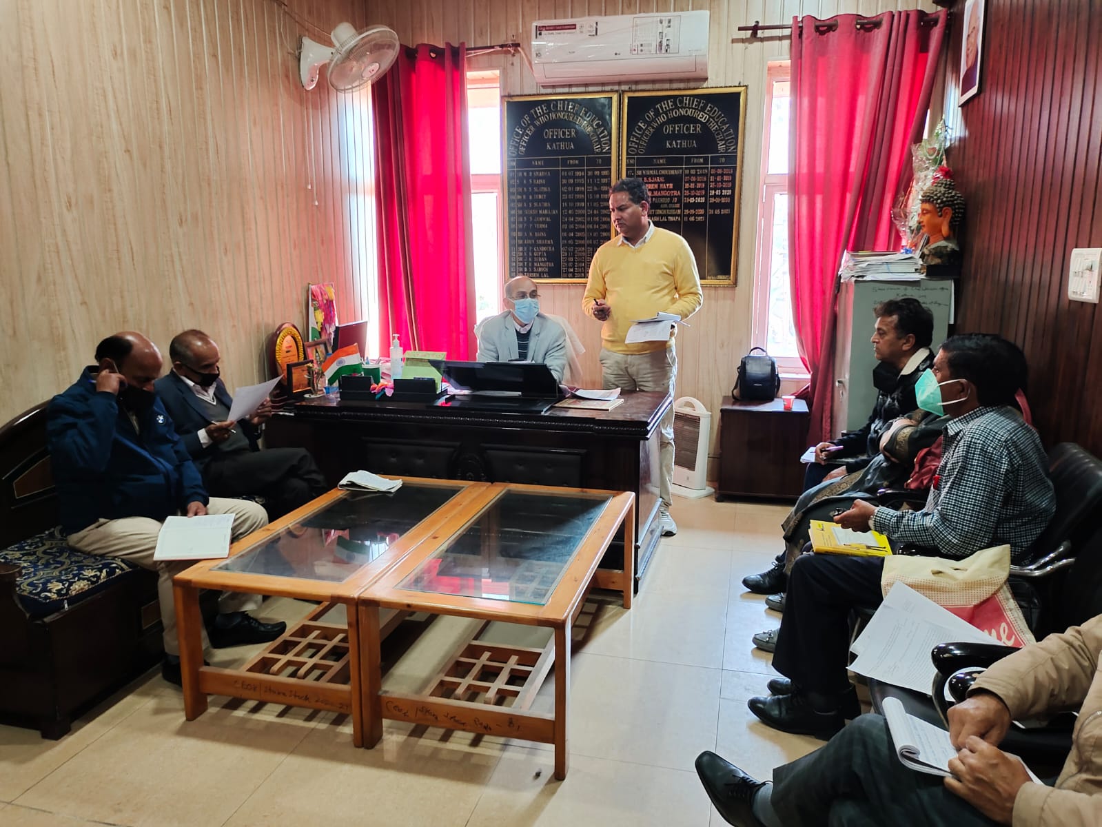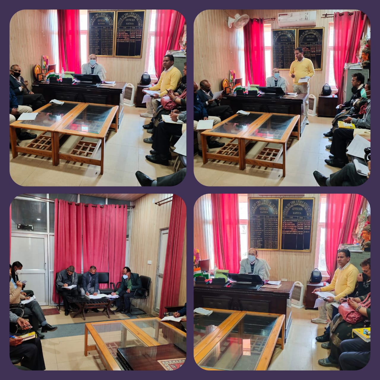 Kathua:  To assess the preparations made for re-opening schools in District Kathua, a meeting was held at the Chief Education Office premises, Kathua which was chaired by Mr. P.L. Thapa, CEO, District Kathua & attended by the Zonal Education Officers of the district.