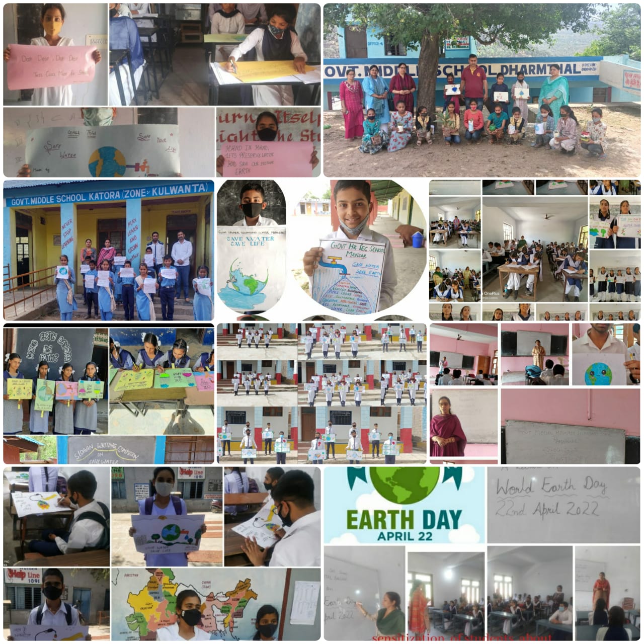 Udhampur: Earth day was celebrated in all the 11 zones of District Udhampur with great enthusiasm as per the Cultural Calendar issued by DSEJ. The ZICC coordinated the different activities on the Earth day which include Poster Making, Painting, Debates, Seminars,Symposium,Quiz Competition etc.