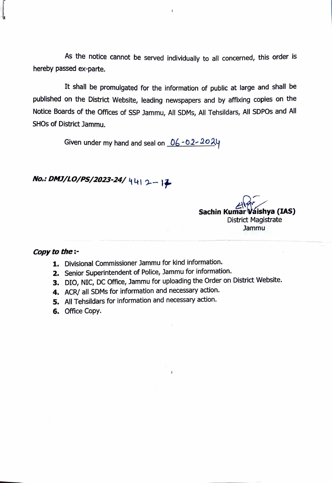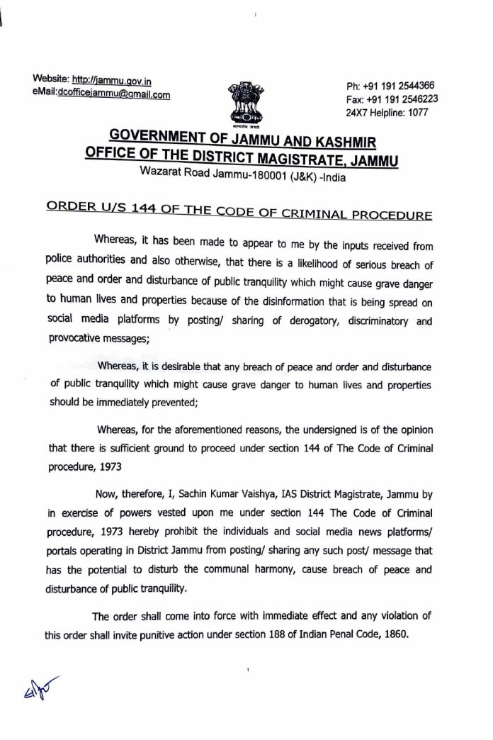 J & K ORDER U/S OF THE CODE OF CRIMINAL PROCEDURE By Paigaam News - February 8, 2024 190 Facebook Twitter Google+ Pinterest WhatsApp