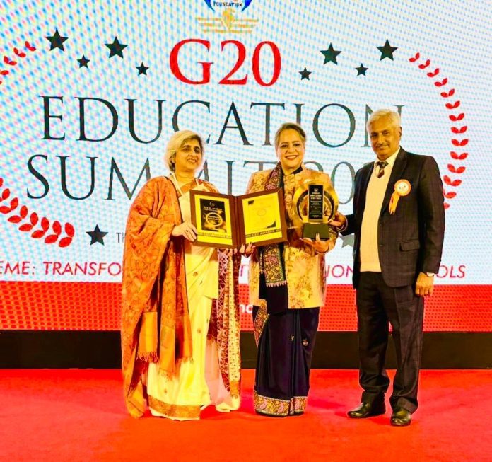 The Centre For Education Development Foundation ( CED ) , a renowned authority in education evaluation, recognised by MSME ( Govt. Of India ) has bestowed this prestigious honour upon DIS Jammu after a thorough assessment of various criteria including academic excellence, faculty expertise , co- curricular activities , Implementation of NEP initiatives , Sports Achievements at National Level and overall institutional impact on the social scenario in a glittering and purposeful G-20 Educational Summit held at the Leela Ambience in Delhi . The event was graced by the esteemed presence of many great scholars and educational stalwarts including Prof. C.B Sharma ( Former Chairman of NIOS ), Prof. M.M.Pant ( Former Pro Vice Chancellor of IGNOU ) and Shri Anil Swarup ( IAS ) Former Secretary School and Mass Education.