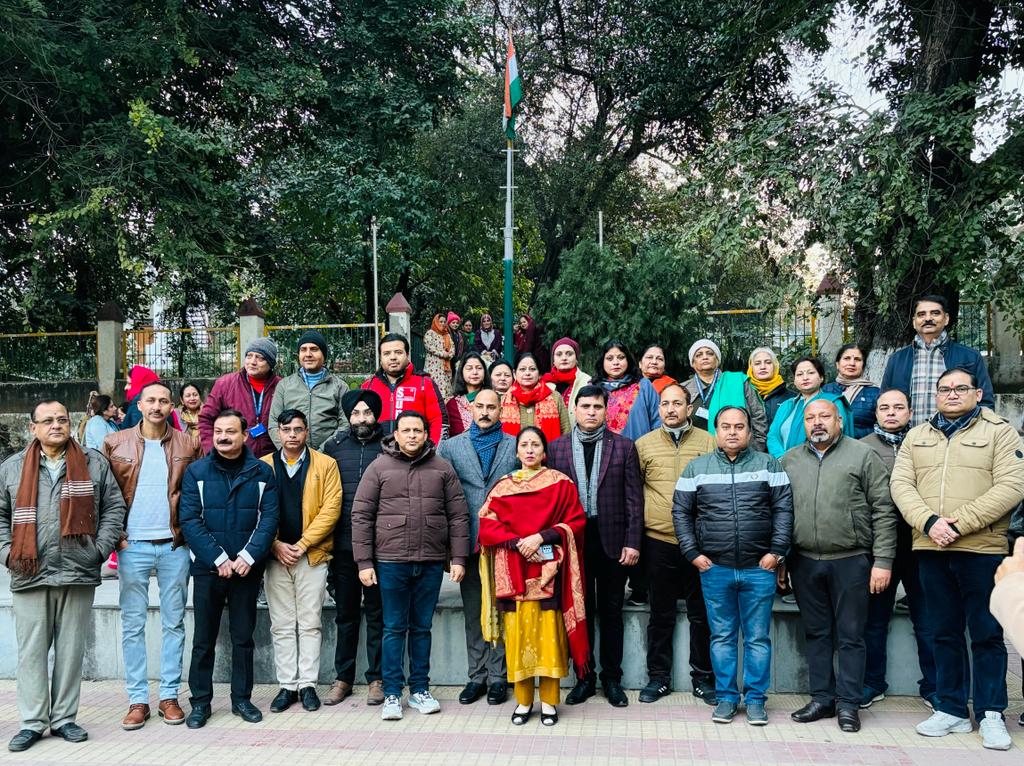 Following the hoisting ceremony ,Smt Anjali Gupta Principal GOVT.SRML MODEL HSS JAMMU, addressed the students and highlighted the essence of Republic day. She said that celebrating this Day is an opportunity to commemorate India’s being Republic.Smt.Anjali also highlighted the importance of democracy and its spirit. She said that the Republic day instil a sense of civic responsibility and pride among the students. Through, the blend of cultural expressions and educational activities, we aim to reinforce the values that define our nation, she further added.”