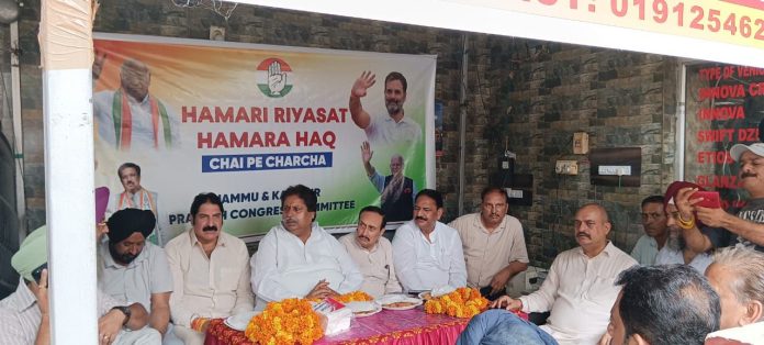 Jammu, Aug 1 – As part of the intensification of its statehood movement- ‘Hamari Riyasat Hamara Haq ‘the Congress today launched outreach campaign ” Chai – pe- Charcha/ Chourahe- pe- Charcha’ in Jammu city and Several other districts of the region.