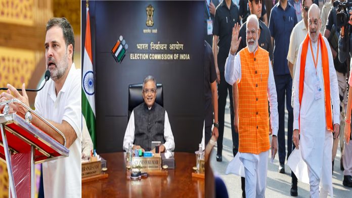 He told of a woman whose photograph appeared 22 times in the voter lists, sometimes named Sweety, sometimes Saraswati, sometimes another alias—and he claimed she was in fact a Brazilian model. He accused the Election Commission of India (EC) of collusion with the ruling Bharatiya Janata Party (BJP), of systematically deleting names, of allowing CCTV footage from booths to be destroyed.