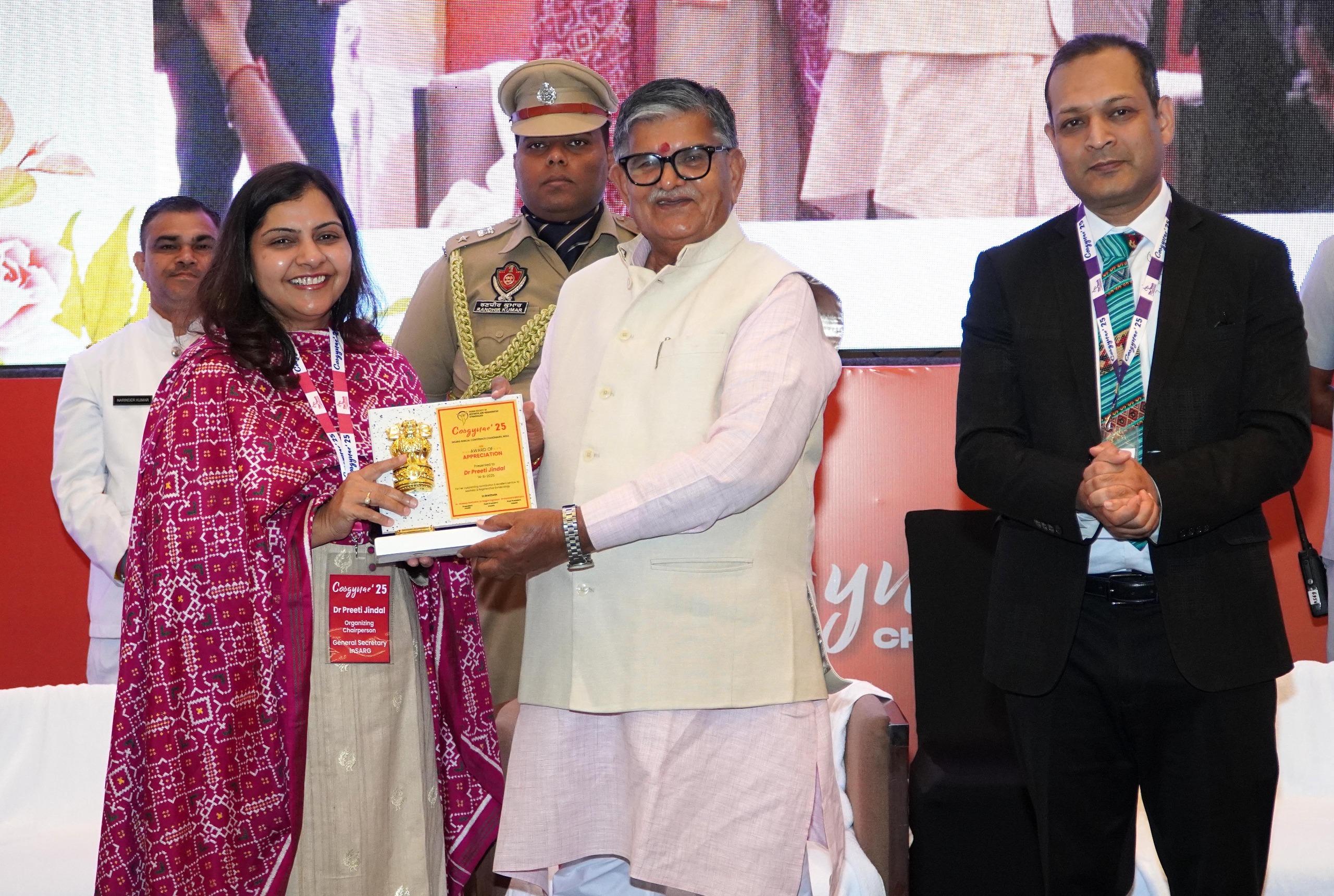 द टच क्लिनिक की निदेशक और इनसार्ग की महासचिव डॉ. प्रीति जिंदल और प्रसिद्ध वैस्कुलर सर्जन डॉ. रावुल जिंदल, जो वैस्कुलर सोसाइटी फॉर लिम्ब साल्वेज (वीएसएलएस) के अध्यक्ष और एम्प्यूटेशन फ्री इंडिया अभियान के संस्थापक हैं, ने राज्यपाल को सम्मानित किया। राज्यपाल ने स्वास्थ्य सेवा और मानवता के क्षेत्र में उनके उत्कृष्ट योगदान के लिए कई प्रतिष्ठित डॉक्टरों को सम्मानित किया। श्री गुलाब चंद कटारिया ने कॉस्गाइनी 2025 की आयोजन अध्यक्ष डॉ. प्रीति जिंदल की सराहना की, जो एक वरिष्ठ सलाहकार स्त्री रोग विशेषज्ञ, आईवीएफ विशेषज्ञ, उच्च जोखिम वाली गर्भावस्था विशेषज्ञ और रोबोटिक सर्जन भी हैं।