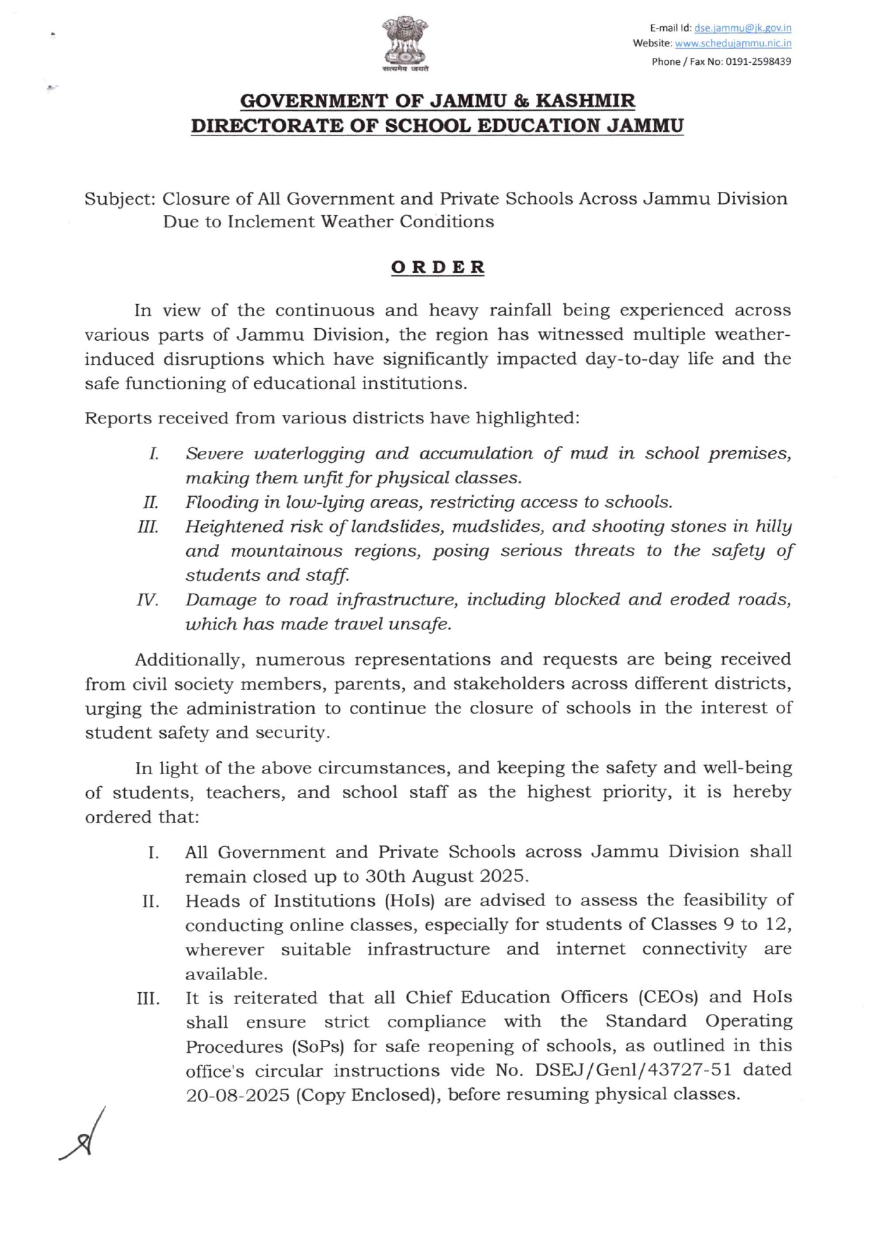 Home J & K Closure of all government and private schools across Jammu division due to...