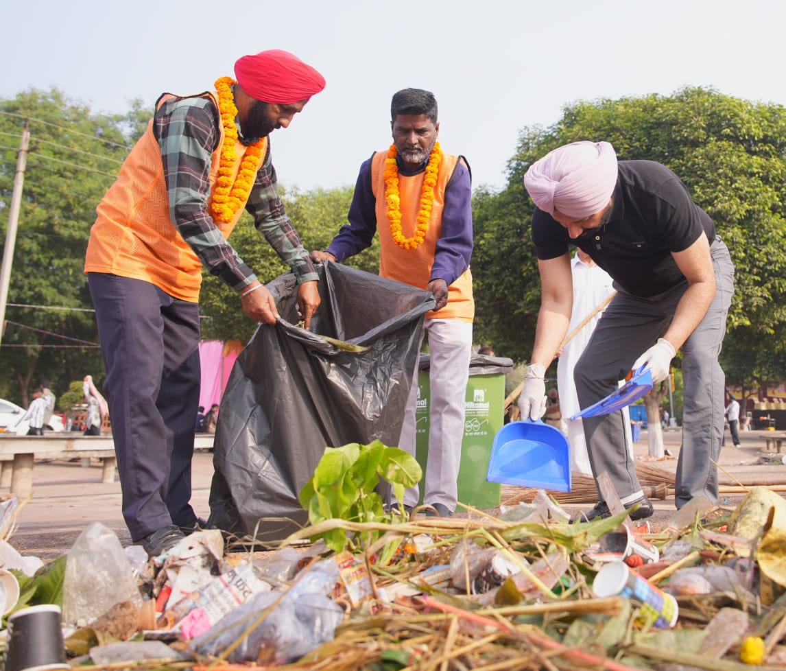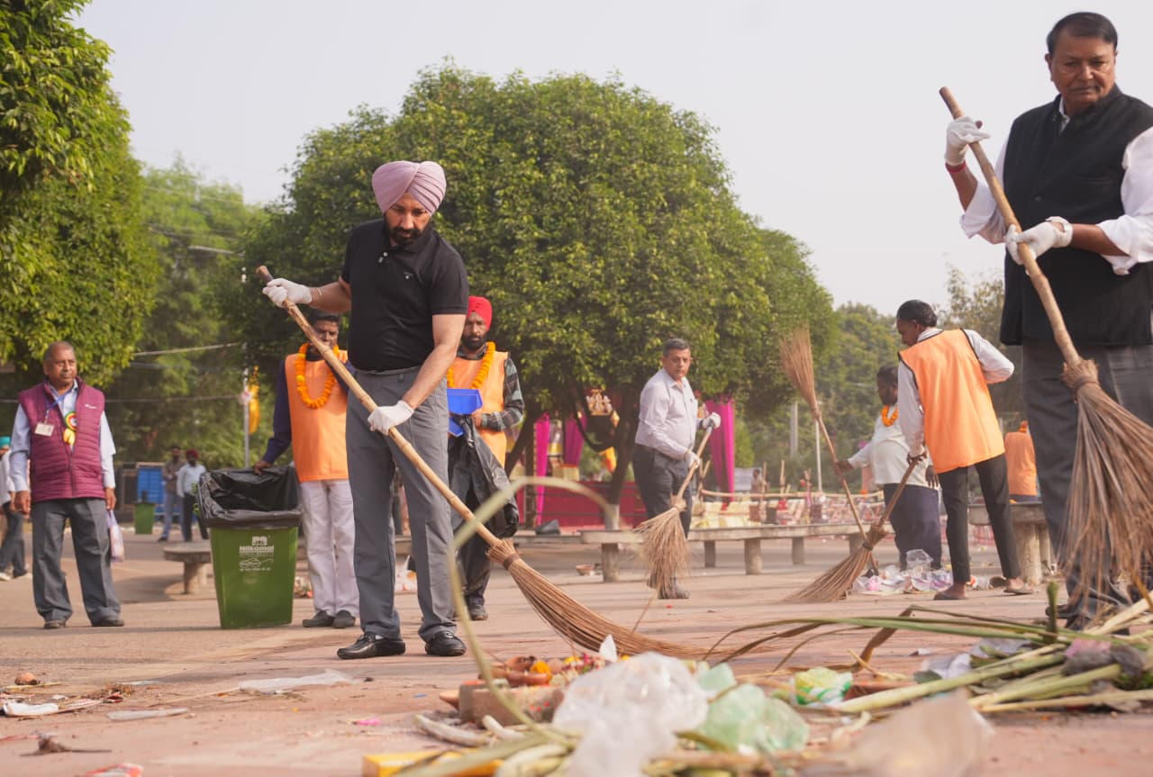 Under the leadership of the Rajya Sabha Member Sandhu’s leadership, who was the chief guest during the Chhath Puja Festivities organised by Purvanchal Welfare Association at Sector 42 Lake, about 200 volunteers carried out a cleanliness drive at the venue to sweep up the waste generated during the Chhath Puja celebrations and restore the cleanliness in the area.