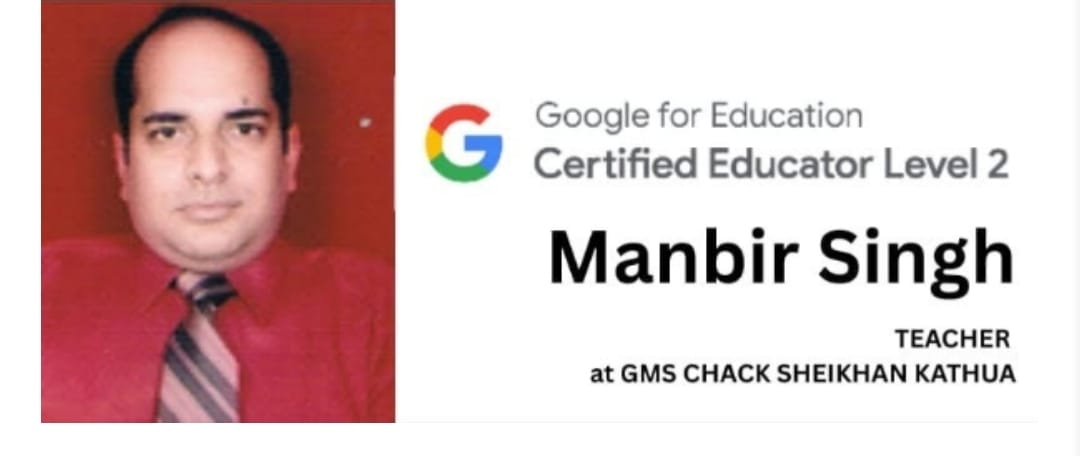 Currently posted at Government Middle School Chack Sheikhan Kathua under the Department of Education, Jammu and Kashmir UT, Manbir Singh recently made headlines by achieving a rare international distinction. He became the only Divyang (differently-abled) teacher from J&K UT to qualify the ‘Google Certified Educator Level 2’ international examination—an achievement that not only puts his school on the global map but also inspires countless others in the education fraternity.