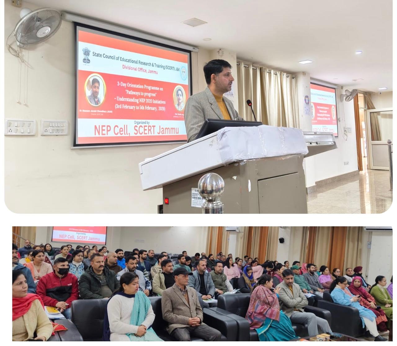 Jammu: The State Council of Educational Research and Training (SCERT), J&K, Divisional Office Jammu, through its NEP Cell, today inaugurated a Three-Day Orientation Programme on “Pathways to Progress – Understanding NEP 2020 Initiatives: Nayi Shiksha, Nayi Soch” at Krishi Bhawan, Talab Tillo, Jammu. The programme is being organised for around hundred teachers and masters of the Jammu Division to strengthen their understanding of the transformative reforms envisaged under the National Education Policy (NEP) 2020.