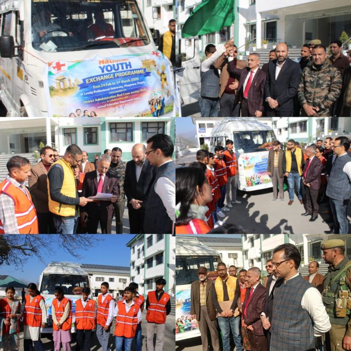 DODA, FEBRUARY 24: Deputy Commissioner Doda, Sh. Krishan Lal, today flagged off a contingent of students from the district to participate in the National Youth Exchange Programme being held at Lovely Professional University (LPU), Phagwara, Punjab, from February 24 to March 1, 2026.
